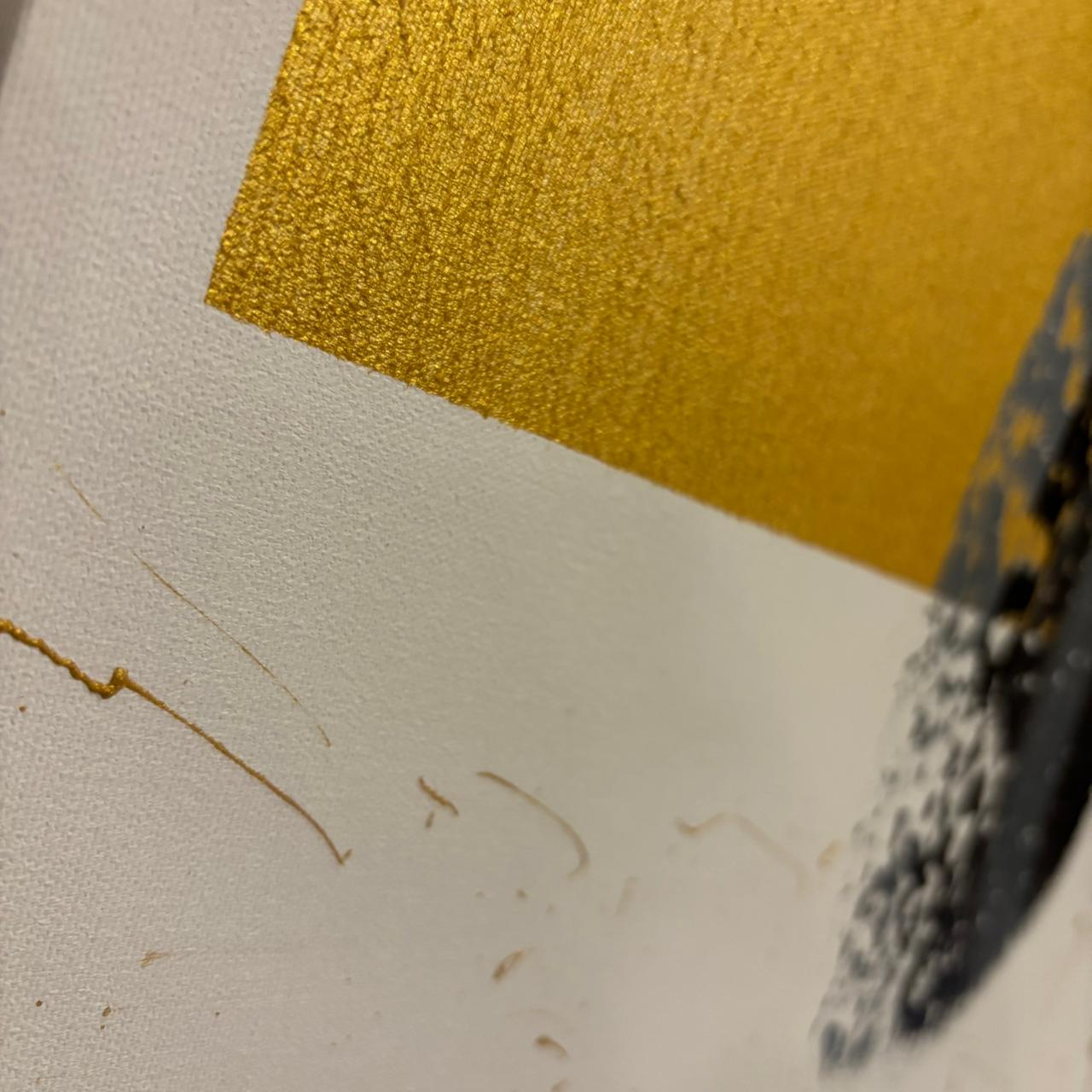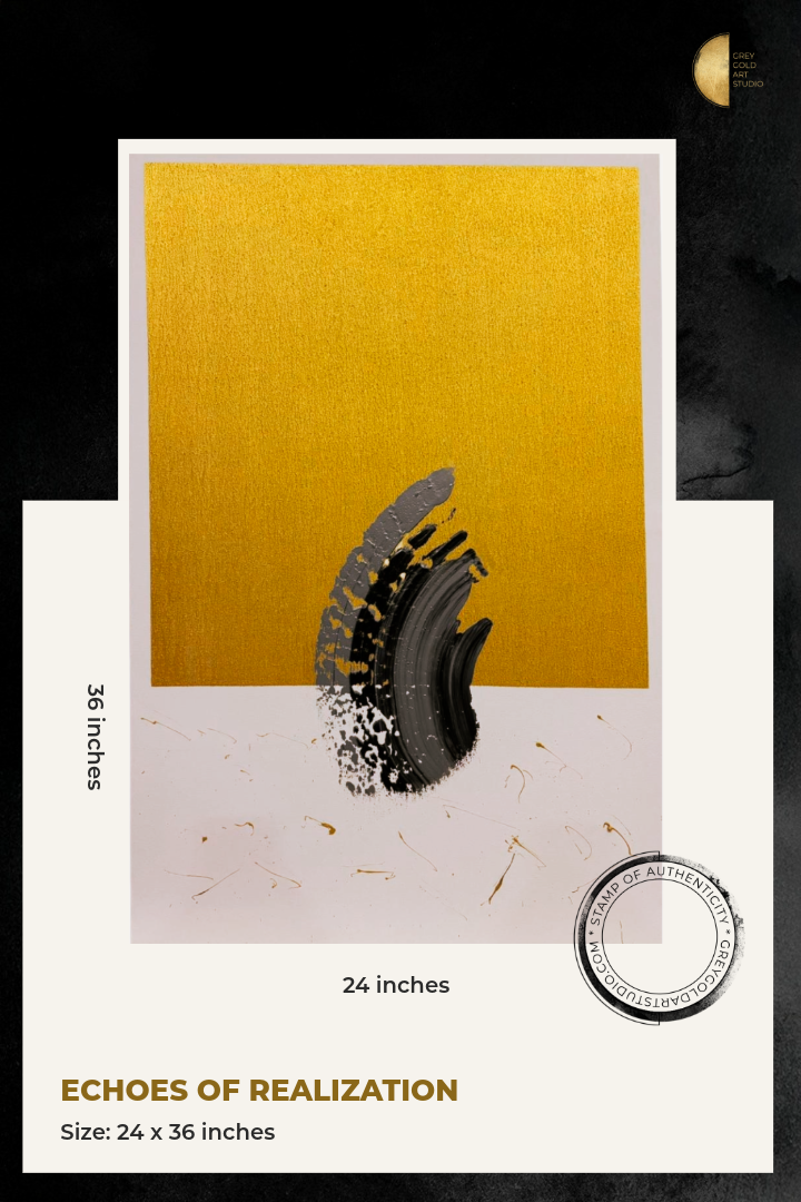 Crafted with striking contrasts and intentional simplicity, this piece draws the viewer inward. The gold box represents the structures we build around ourselves, while the emerging grey-white patch symbolizes the courage to see beyond them. “Echoes of Realization” invites you to reflect, reset, and reconnect with your own inner voice—making it not just an artwork, but a daily reminder of growth and personal truth.